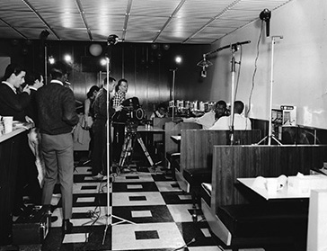 ![]() The Montclairs regularly met in a local pizza parlor, so Pike Productions shot one of their key, non-musical scenes in the actual location. |