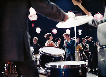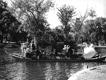 ![]() In this black and white still, you have to look closely to see the film crew, crowded in the bow, shooting the beautiful Swan Boat reconciliation scene between Ted (Travis Pike), and Karen (Patricia Ewing). |