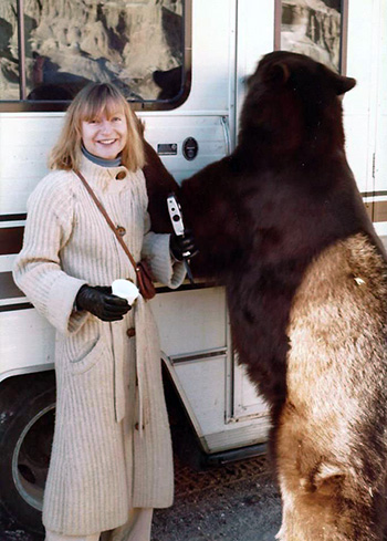 The bear's name is "Pooh." He's big and kinda scary, but I'm told he's a real sweetie. This is the craft service truck. He's probably just hungry . . . (And that's a good thing? Posing for a photo with a huge, hungry bear?)