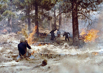 It's okay! Everything's under control. The Forest Service set the backfires for us, and are standing by. But don't get too close to the flames in those costumes . . .