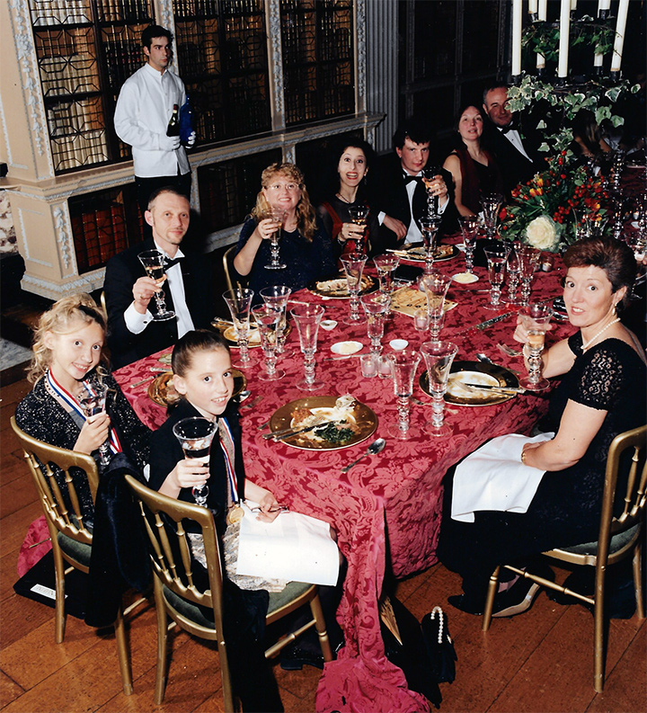 That's Yvonne, again, on the far left, and above her, on the far side of the table, her proud parents, Andrew and Patricia Hill and next to them, her Aunt Shenaz and Uncle Timothy Harrison, and, beyond them, Dr. Judith Stanton with my old friend from Newton, Massachusetts, Dick Moran, peering around the candlestick.  Going back to the end of the table, the girl to Yvonne's right is talented rhythmic gymnast Hannah Walker, whose sportsmanship did not go unnoticed.  It was recently announced that she had won the British under 10 championship.  The lovely lady on the right is Hannah's deservedly proud mother, Jennifer, whose excellent sandwiches may not be enough by themselves to convince kids to take up the rigorous training schedule demanded of aspiring rhythmic gymnasts, but might encourage them to show up for rehearsals.